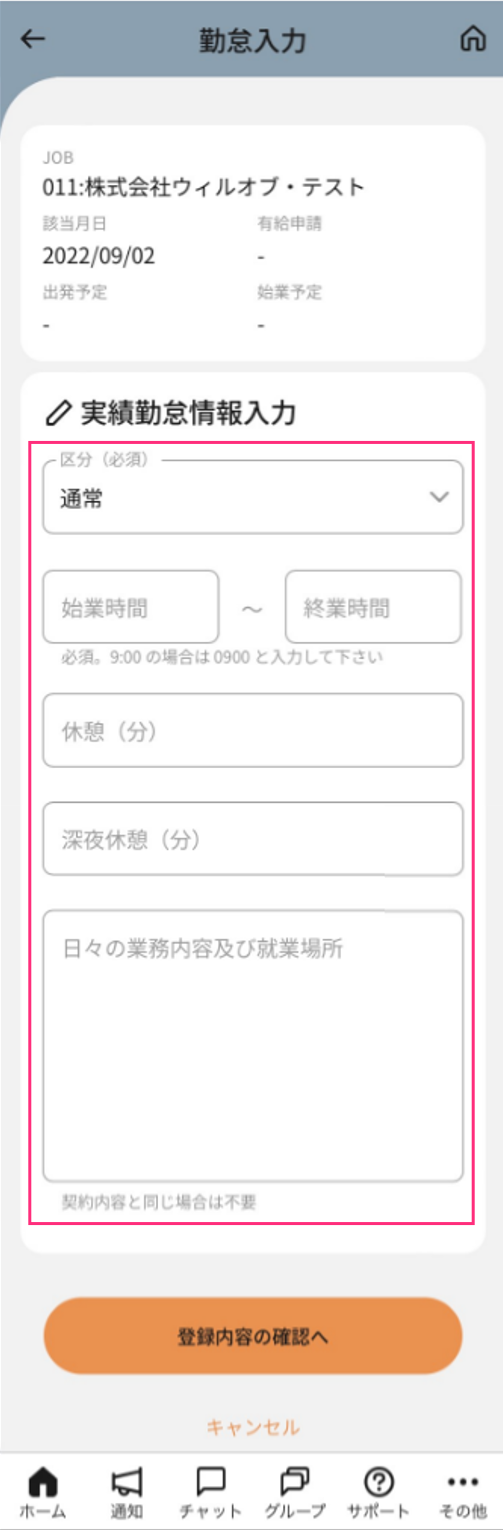 始業時間、就業時間、休憩時間(分)を入力して下さい